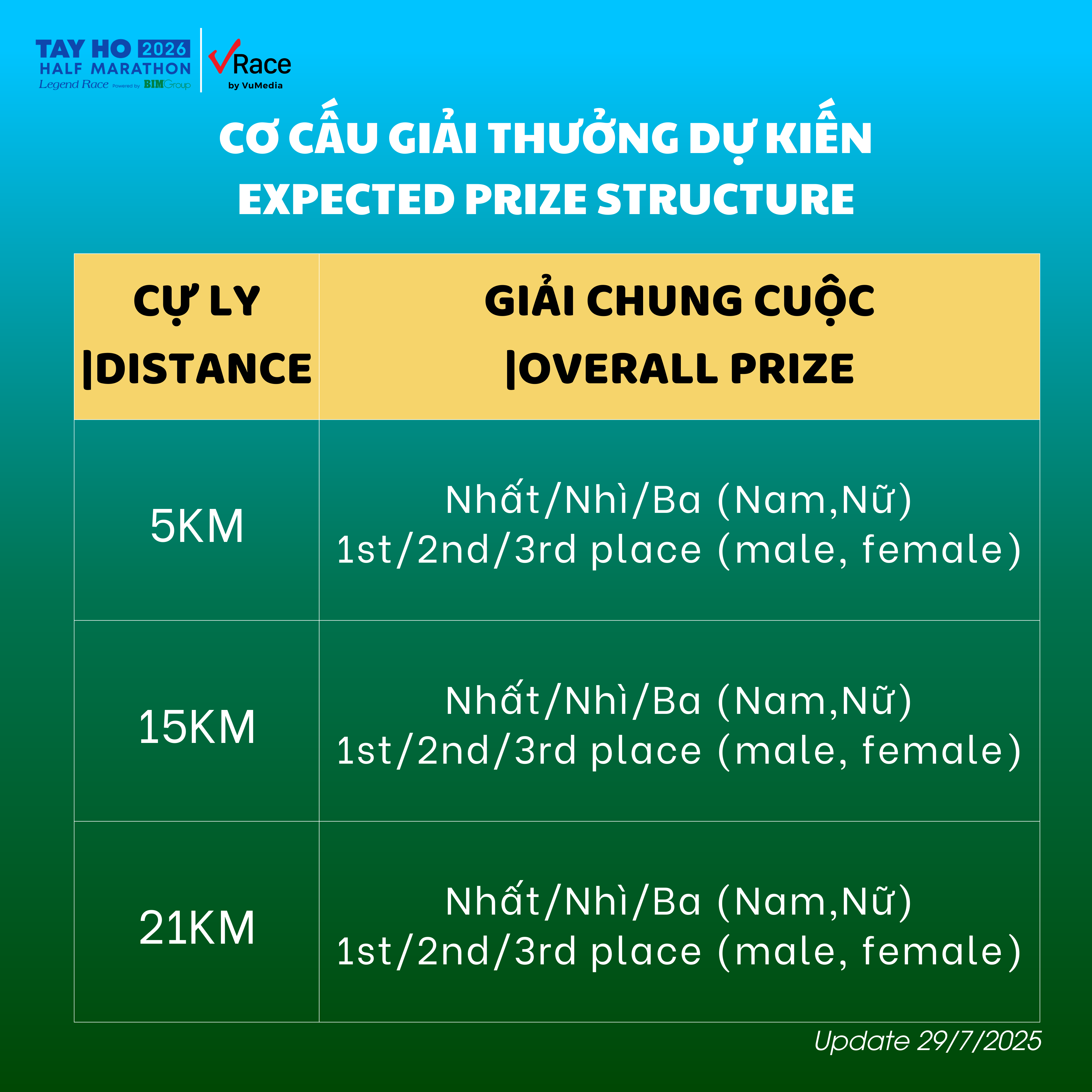 Với 3 cự ly: 5KM – 15KM – 21KM, mỗi bước chạy là một điểm nối giữa quá khứ và hiện tại – nơi mỗi vận động viên viết nên câu chuyện của mình tại một LỄ HỘI RUNNERS ngập tràn năng lượng, màu sắc và cảm xúc.