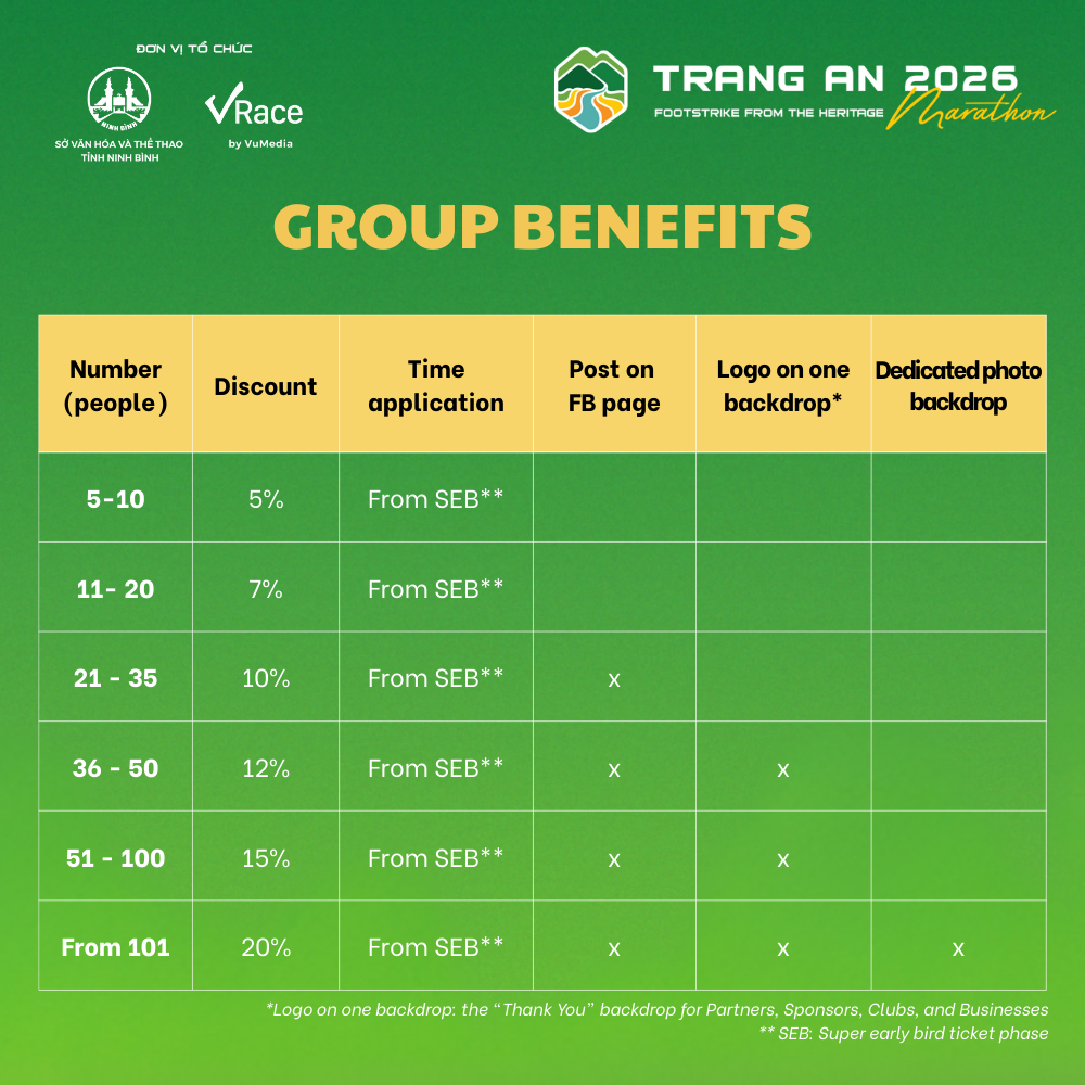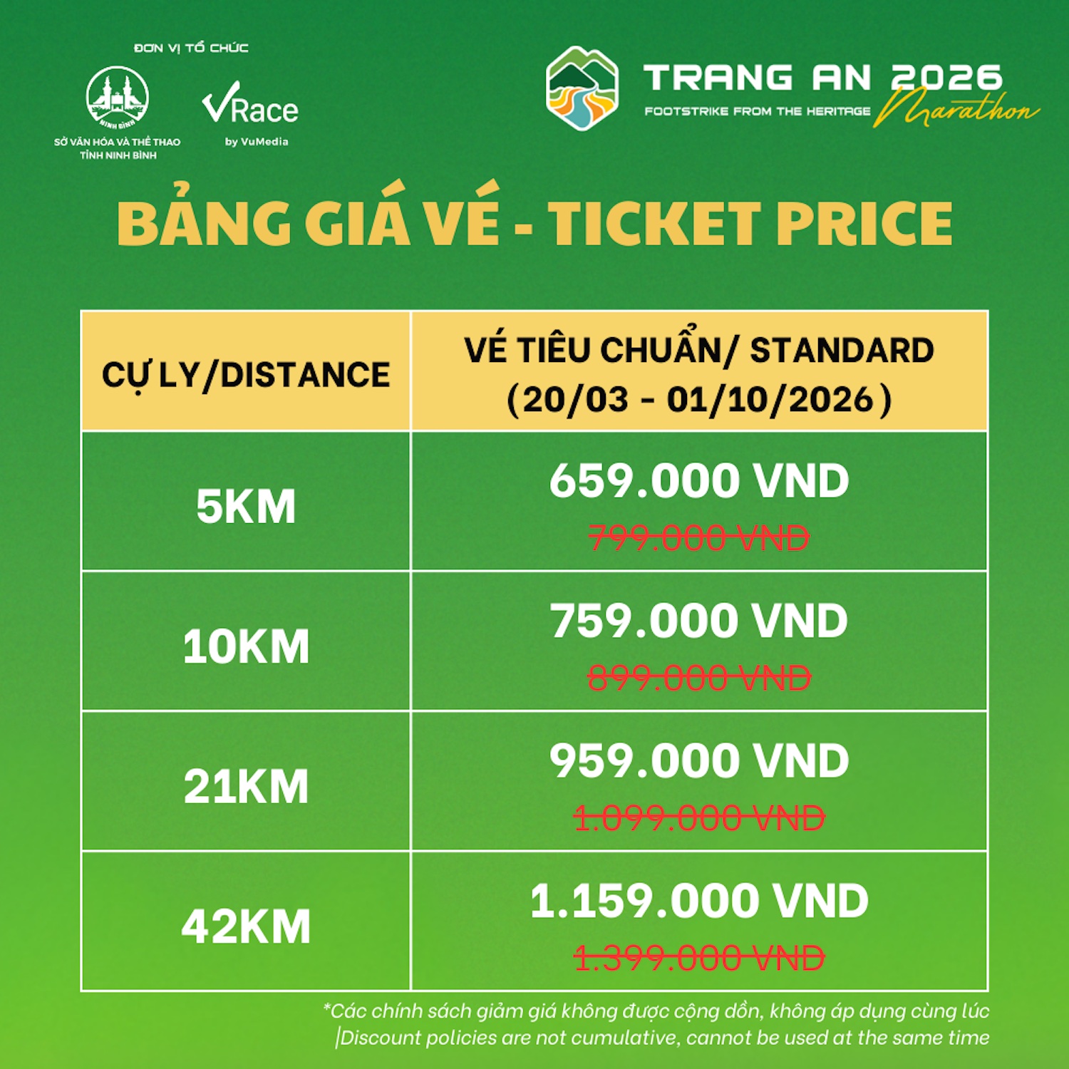 Giải chạy Trang An Marathon là sự kiện thường niên được tổ chức bởi Công ty Cổ phần Vũ Media (VRace) phối hợp cùng Sở Văn Hóa và Thể Thao tỉnh Ninh Bình. Hãy để hành trình chinh phục Tràng An trở thành một trải nghiệm rực rỡ và đáng nhớ trong hành trình chạy bộ của riêng bạn! Hẹn gặp “đồng run” tại Trang An Marathon 2026.