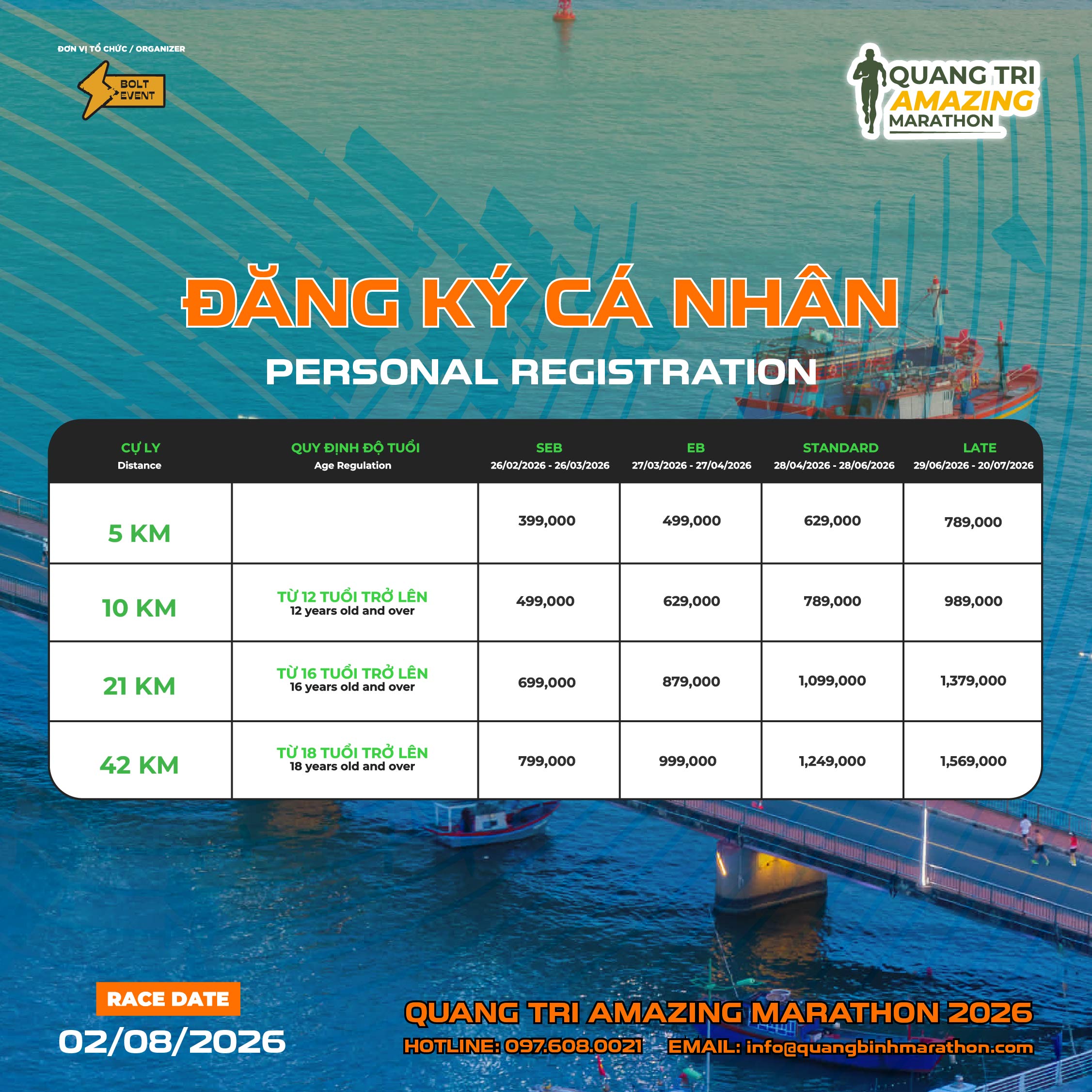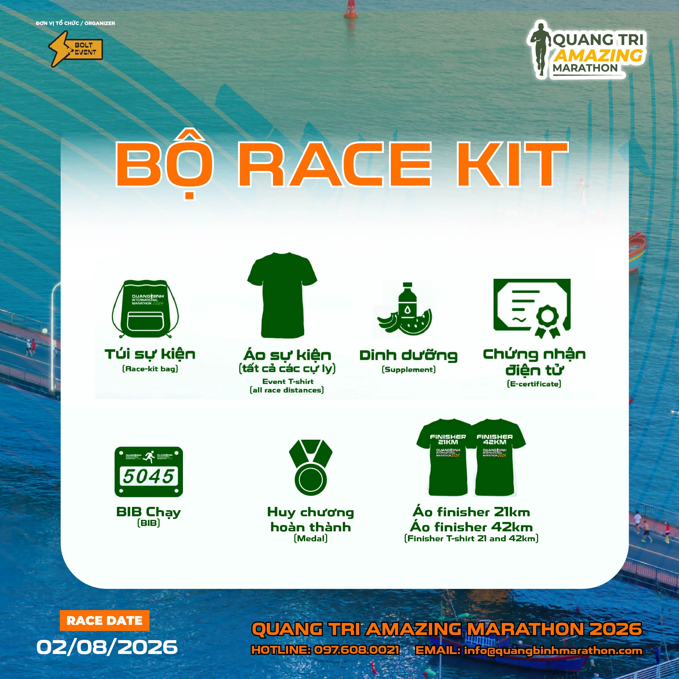 Quang Tri Amazing Marathon 2026 là sự kiện chạy bộ quy mô lớn với 4 cự ly 5km, 10km, 21km và 42km, phù hợp cho cả người mới bắt đầu lẫn vận động viên chuyên nghiệp. Giải đấu mang đến trải nghiệm độc đáo khi kết hợp giữa thi đấu thể thao và khám phá vẻ đẹp hoang sơ, kỳ vĩ của thiên nhiên miền Trung.