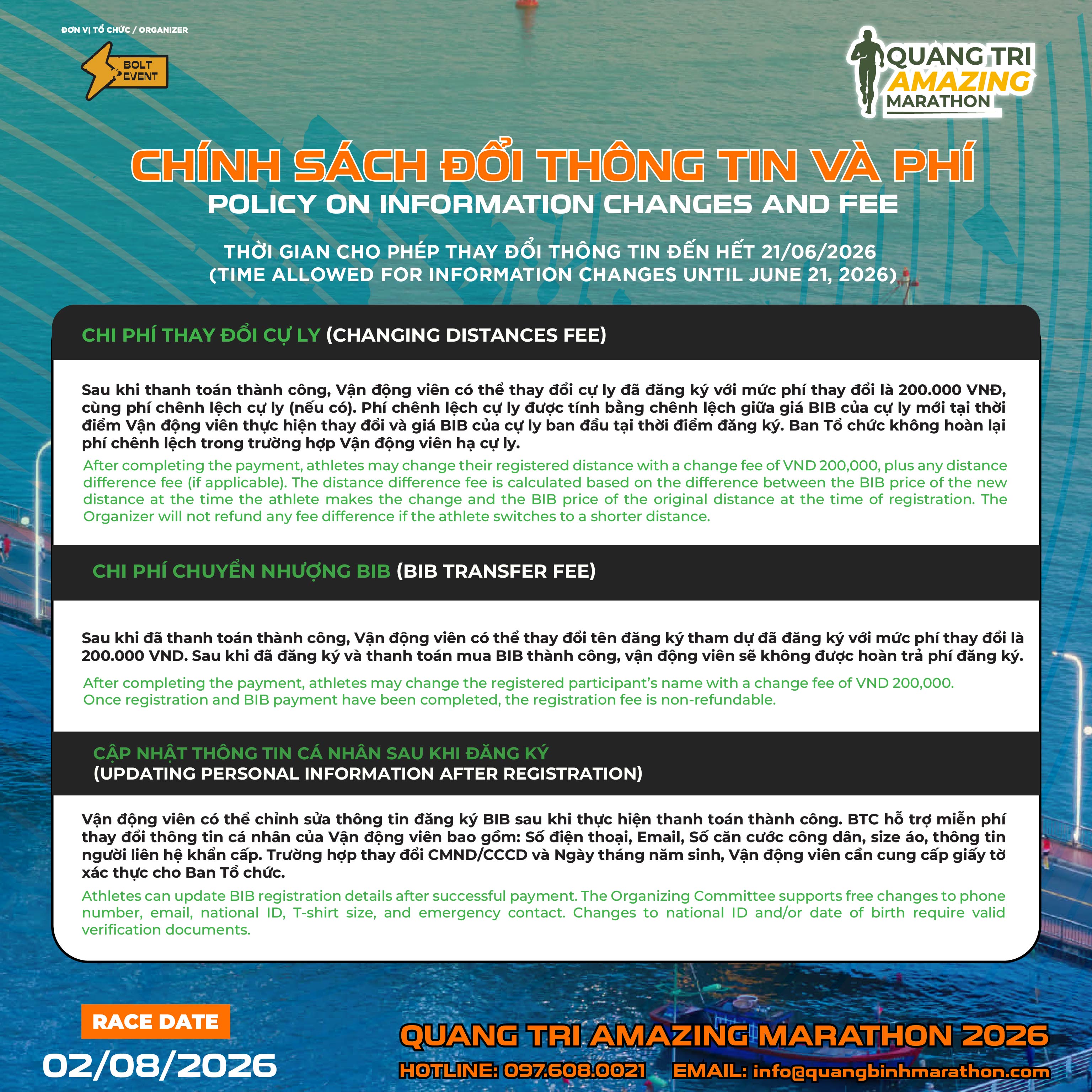 Giải đấu sẽ diễn ra vào ngày 02/08/2026 tại phường Đồng Hới, hứa hẹn mang đến một ngày hội thể thao sôi động, truyền cảm hứng và đầy dấu ấn cho cộng đồng yêu chạy bộ trong và ngoài nước.