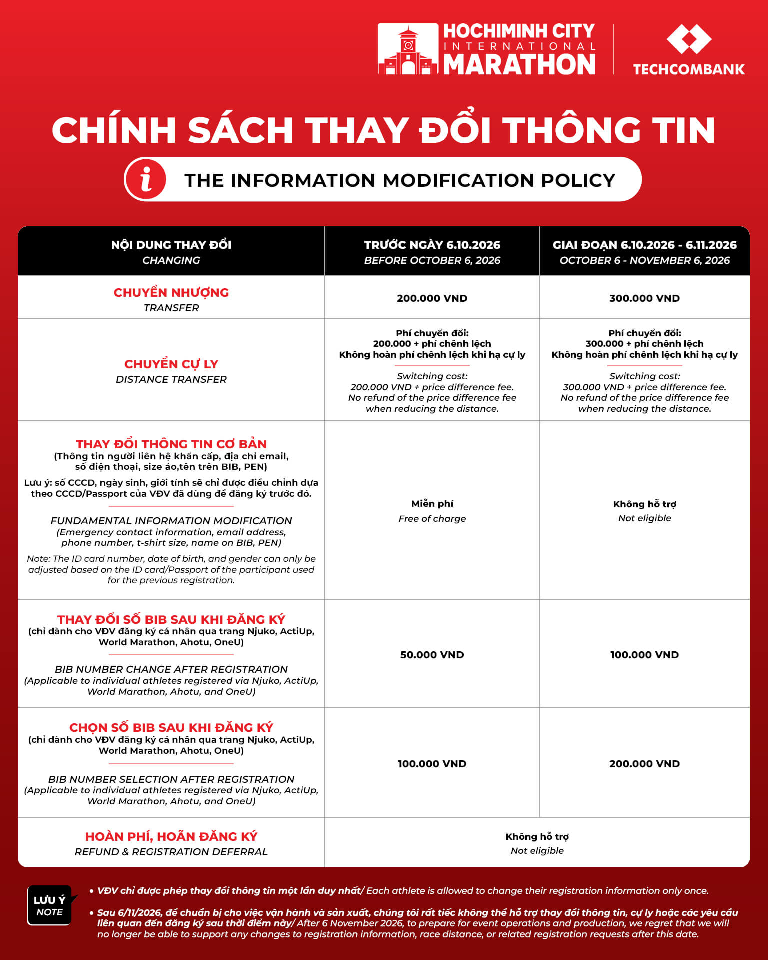 Giải Marathon Quốc tế Thành phố Hồ Chí Minh Techcombank là cơ hội tuyệt vời để bạn chiêm ngưỡng một trong những thành phố năng động bật nhất thế giới trong ngày! Chạy dọc những con đường năng động của Thành phố đầy cảm hứng này và tham gia một giải chạy mang tính biểu tượng nhất tại Đông Nam Á.